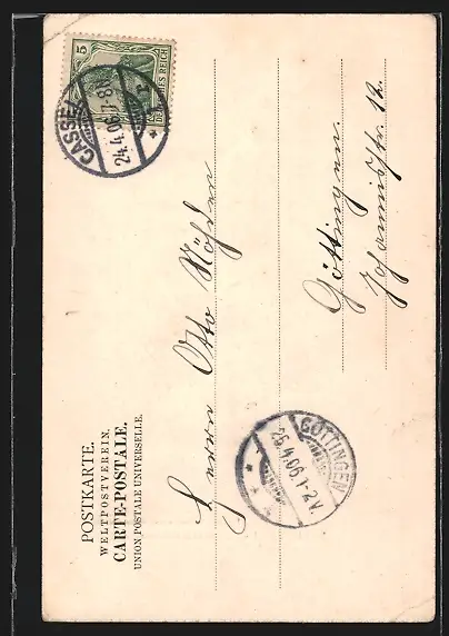 alte Ansichtskarte, gelaufen 1906, Eckknick li. unten, guter Zustand