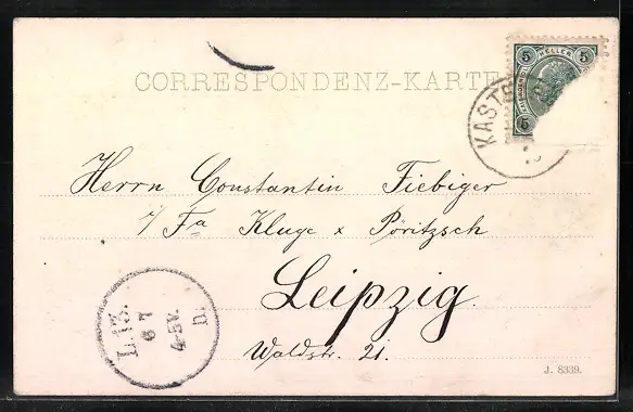 gelaufen 1904, Briefmarke tw. entfernt, rückseitig Oberflächenschaden, Eckknick re. oben, guter Zustand