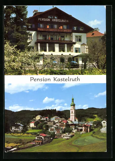 AK Kastelruth, Pension Kastelruth, Ortsansicht aus der Vogelschau