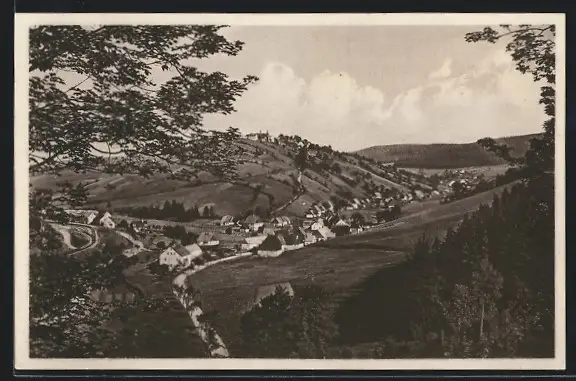 AK Katharinaberg, Bergidyll mit Ortsansicht