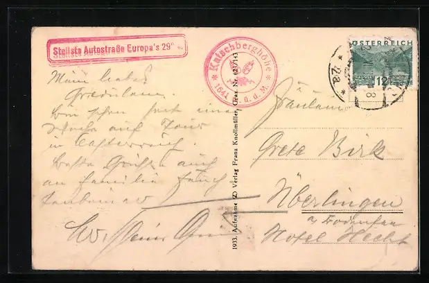 AK Katschberghöhe, Gasthaus am steilsten Alpenpass Europas