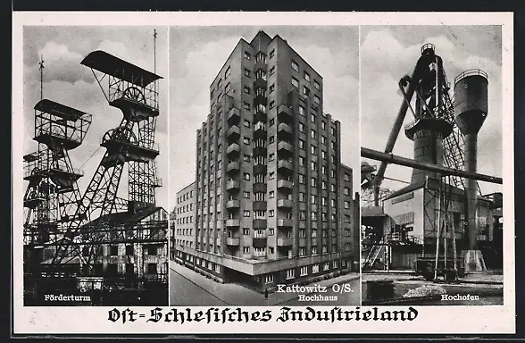 AK Kattowitz, Hochhaus, Hochofen, Förderturm