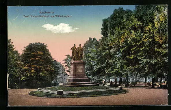 AK Kattowitz, Zwei-Kaiser-Denkmal am Wilhelmsplatz