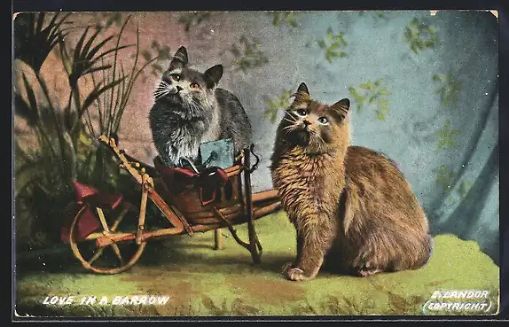 AK Katze in einer kleinen Schubkarre