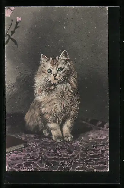 AK Katze sitzt auf einem Teppich