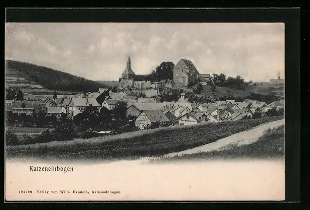 AK Katzenelnbogen, Ortsansicht aus der Vogelschau