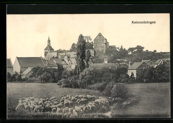 AK Katzenelnbogen, Ortsansicht aus der Vogelschau