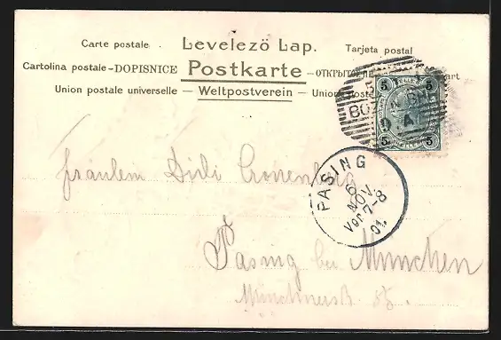 gelaufen 1901, Eckknick re. unten, Stempelspur, guter Zustand