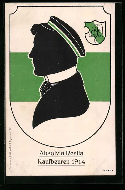 AK Kaufbeuren, Absolvia Realia 1914, Student mit Mütze, Studentenwappen