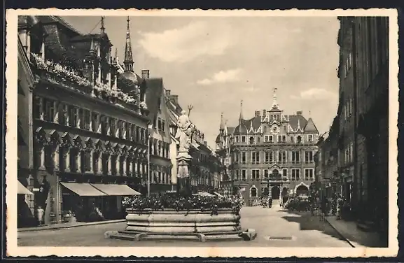 AK Kaufbeuren, Neptunbrunnen auf der Kaiser-Max-Strasse
