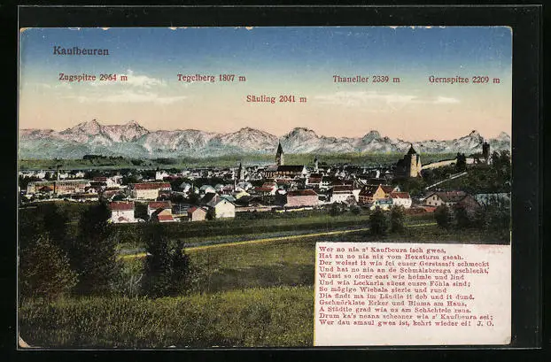 AK Kaufbeuren, Totalansicht mit Gebirgskette