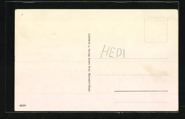 Personenbezogene Daten auf der Rückseite der Karte wurden durch blauen Textmarker unkenntlich gemacht. Die blauen Stellen sind auf die Vorderseite durchgeweicht und wirken sich negativ auf das Postkartenfoto aus