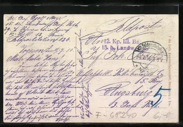 gelaufen 1916 als Feldpost, guter Zustand