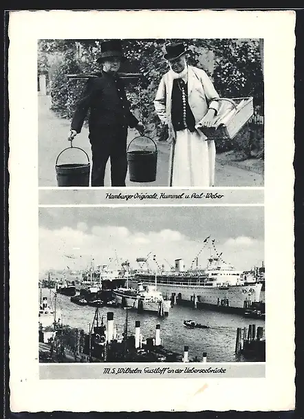 AK KdF-Schiff Wilhelm Gustoff an der Weserbrücke, Hamburger Originale