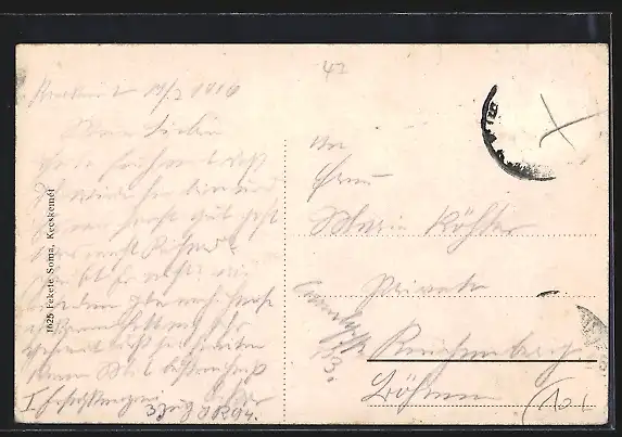 alte Ansichtskarte, gelaufen, Briefmarke entfernt, rückseitig Oberflächenschaden, Bugspur unten re., guter Zustand