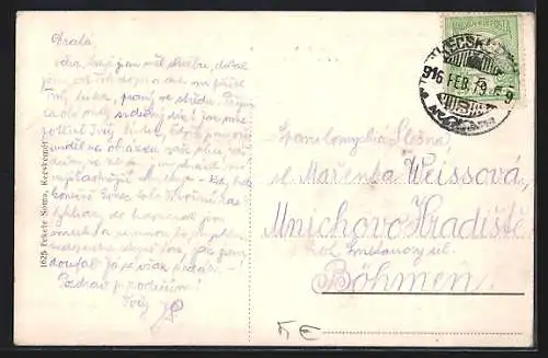 alte Ansichtskarte, gelaufen 1916, Eckknicke oben, Bugspur re. oben, guter Zustand
