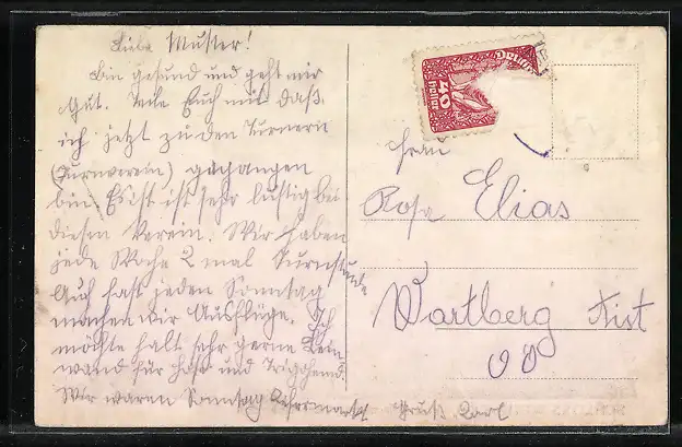 alte Ansichtskarte, gelaufen, Briefmarke entfernt, rückseitig Oberflächenschaden, guter Zustand