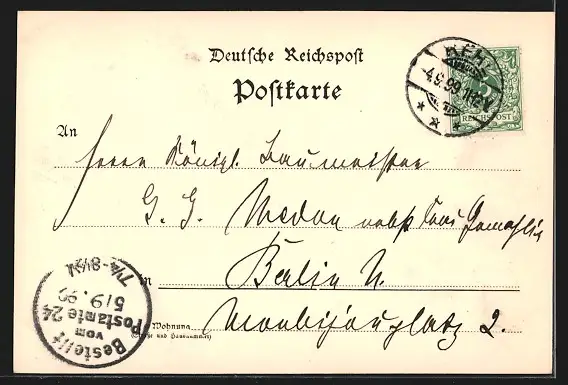 alte Ansichtskarte, gelaufen 1899, guter Zustand