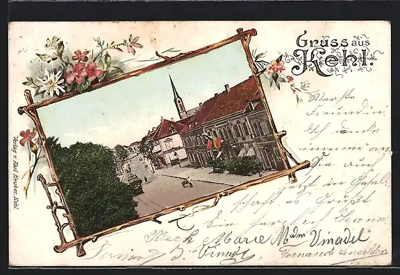 AK Kehl, Strassenpartie mit Strassenbahn, Passepartout