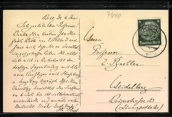 alte Ansichtskarte, gelaufen, Knick li. unten, guter Zustand