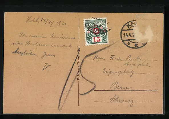 alte Ansichtskarte, gelaufen 1921, Briefmarke entfernt, rückseitig Oberflächenschaden, guter Zustand