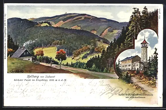 AK Keilberg, Kaiser Franz Josefs-Aussichtsturm mit Unterkunftshaus