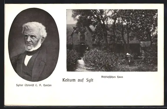 AK Keitum /Sylt, Porträt des Sylter Chronisten C. P. Hansen, Altfriesisches Haus