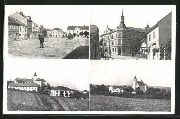 AK Kelc, Kirche, Strassenpartie mit Gebäudeansicht, Ortspartie
