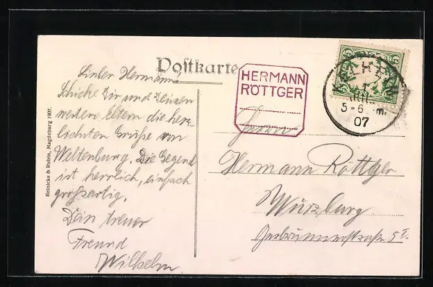 alte Ansichtskarte, gelaufen 1907, Stempelspur, guter Zustand