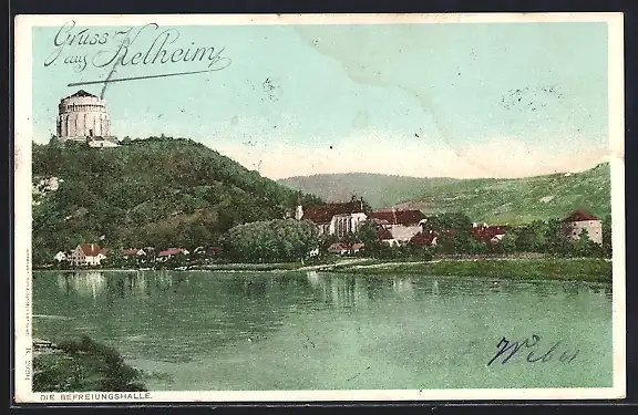 AK Kelheim, Flusspartie mit Blick auf den Berg