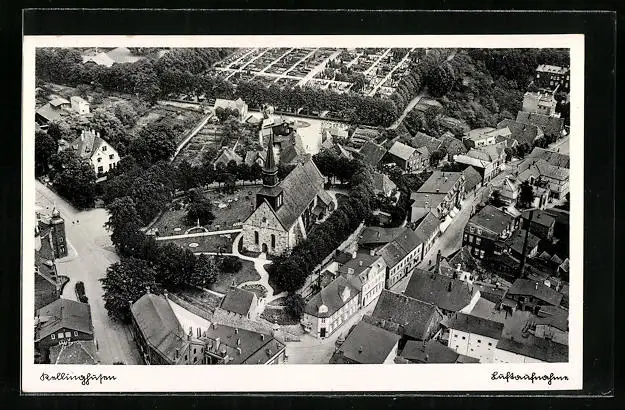 AK Kellinghusen, Fliegeraufnahme mit Kirche