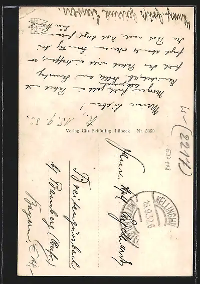 alte Ansichtskarte, gelaufen 1932, Briefmarke entfernt, Eckknick re. oben, guter Zustand