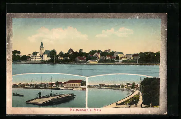 AK Kelsterbach a. Main, Totalansicht, Uferpartie