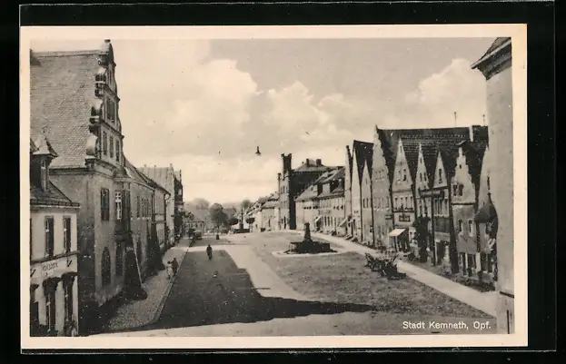 AK Kemnath /Opf., Strassenpartie mit Geschäften und Brunnen