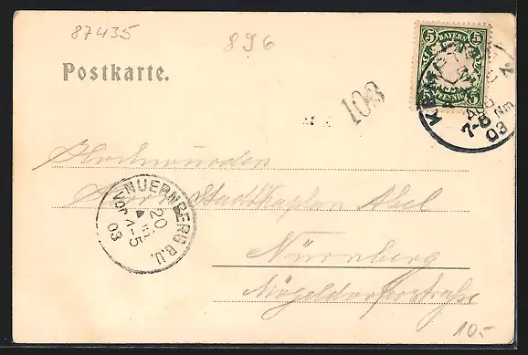 alte Ansichtskarte, gelaufen 1903, guter Zustand