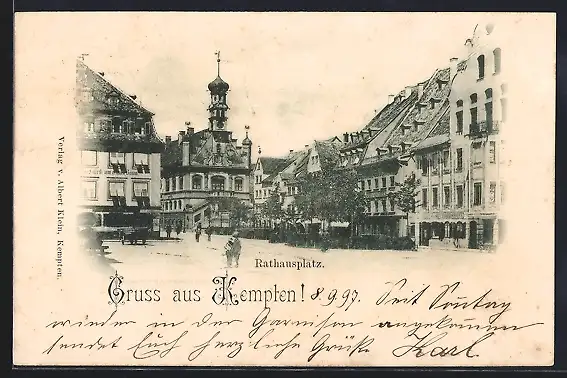 AK Kempten / Allgäu, Strassenpartie am Rathausplatz
