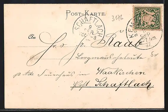 alte Ansichtskarte, gelaufen 1897, guter Zustand