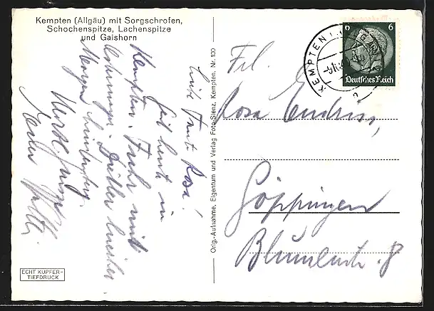AK Kempten (Allgäu), Teilansicht mit Sorgschrofen und Gaishorn