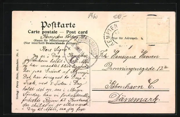 alte Ansichtskarte, gelaufen 1906, Briefmarke entfernt, guter Zustand