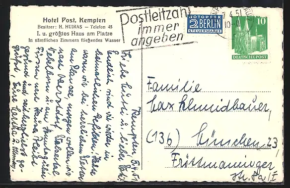 alte Ansichtskarte, gelaufen 1951, Eckknicke oben, guter Zustand