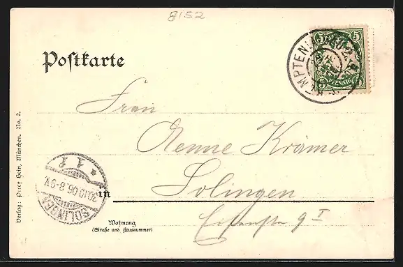 alte Ansichtskarte, gelaufen 1906, Stempelspur, guter Zustand