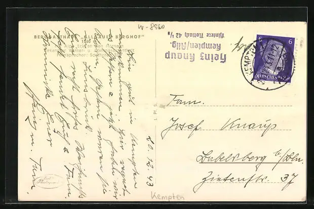 AK Kempten, Berggasthaus Allgäuer Berghof