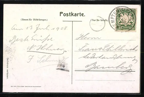 alte Ansichtskarte, gelaufen 1908, guter Zustand