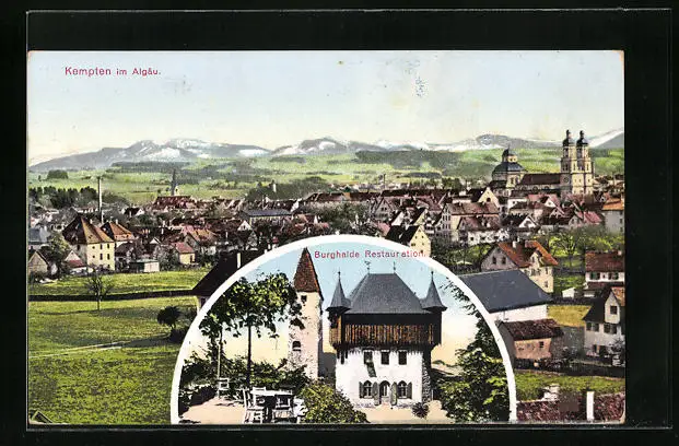 AK Kempten, Gasthaus Burghalde, Ortsansicht