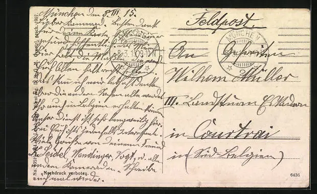 gelaufen 1915, Eckknick oben li., guter Zustand