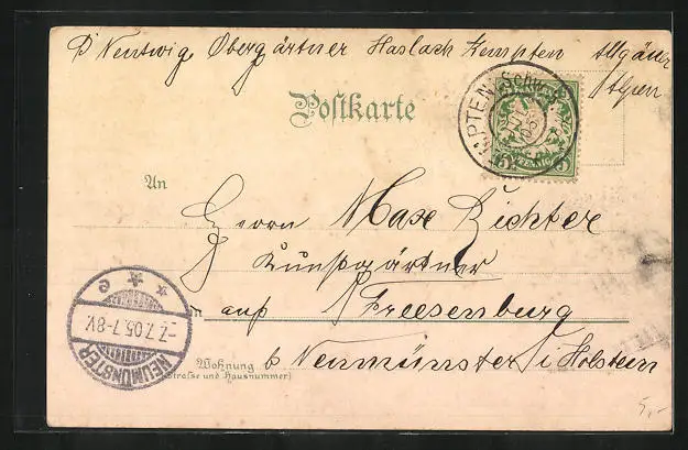 alte Ansichtskarte, gelaufen 1905, Eckknicke re., Bugspuren li. oben, Stempelspur, guter Zustand