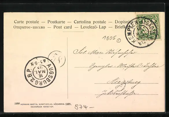 alte Ansichtskarte, gelaufen 1905, guter Zustand
