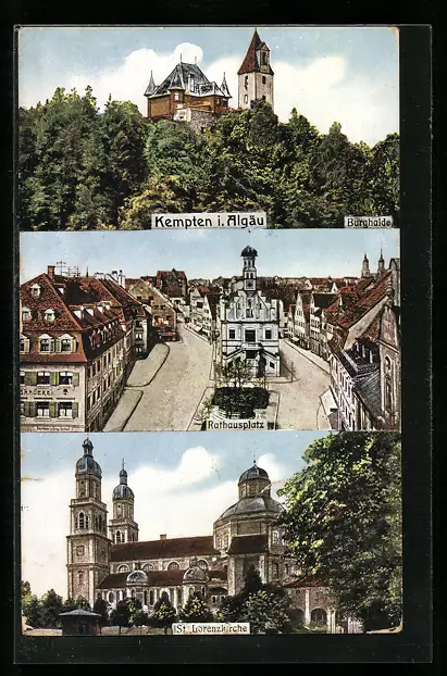 AK Kempten i. Algäu, St. Lorenzkirche, Burghalde, Rathausplatz