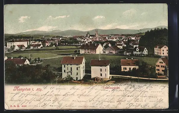AK Kempten i. Allg., Totalansicht mit Bergpanorama