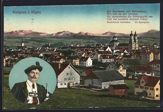 AK Kempten i. Allgäu, Ortsansicht mit Berglandschaft